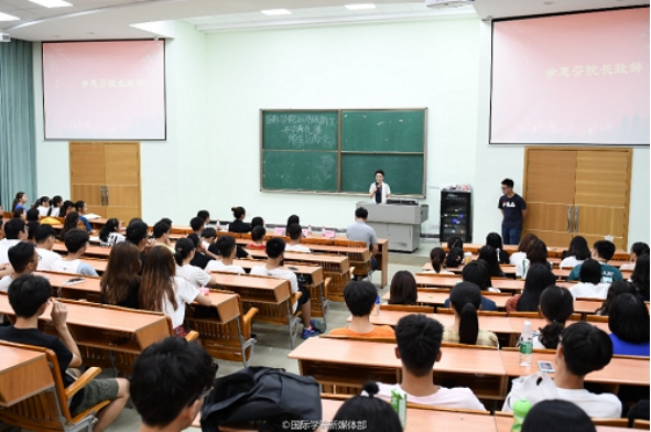 The freshmen opening ceremony of the International School was held on September 16th, 2019 in Room D208 of the Lizhi Building. Attendees included all the freshmen, senior student representatives. Professor Yu Huifen, the Dean of the International School, Counselor Yang Lijun, and all faculty from the International School.