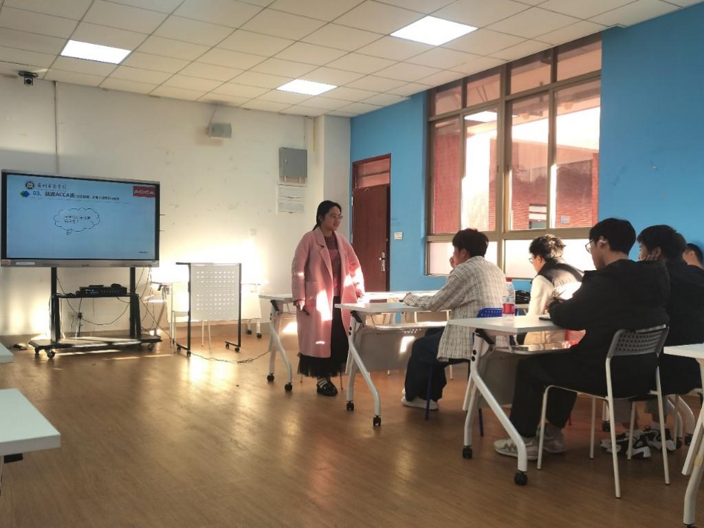 In order to help the 2023 ACCA International Certified Public Accountant class students gain a deeper understanding of the importance of the International Certified Public Accountant certificate in their careers, and allow first-year students to prepare for the qualification examination early and make career and study abroad plans, on December 28, the International College of Guangzhou Huashang University invited ACCA outstanding teacher Chen Mengmeng to hold an ACCA International Certified Public Accountant class professional exchange and sharing meeting in Room 405 of Qizhi Building. The 2023 International Accounting ACCA class students attended the meeting.