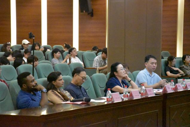 General Secretary Xi Jinping emphasized during the 11th collective study session of the Political Bureau of the Communist Party of China Central Committee the need to accelerate the development of new quality productive forces and solidly promote high-quality development. In order to help college students understand the connotation, development, and influence of new quality productivity, tell the story of China's development of new quality productivity in English. Since April 2024, the International College of Guangzhou Huashang College, in conjunction with the International Exchange and Cooperation Office, has organized the second English dubbing competition“Focus on New Quality Productive Force, Assist High-Quality Development”. Through the preparation of dubbing videos by contestants and preliminary selection, the final was held on May 28, 2024 in the Academic Lecture Hall of the Guangzhou Campus Library. Wang Wenzhong, Director of the International Exchange and Cooperation Department, Hui Yanyan, Dean of the International School, Du Xiujun, Vice Dean of Foreign Languagesthe School of , Yang Lijun, Secretary of the Party Branch of the International College, Dr. Frank Larbi, a Ghanaian teacher, Dr. Aneela Qadir, a Pakistani teacher, and more than 120 college students from the InternationalSchool, Foreign LanguagesSchool , LiteratureSchool, Health and MedicineSchool ,Management School , Artificial IntelligenceSchool , Economics and TradeSchool , andTeacher Education School attended the finals on site.
