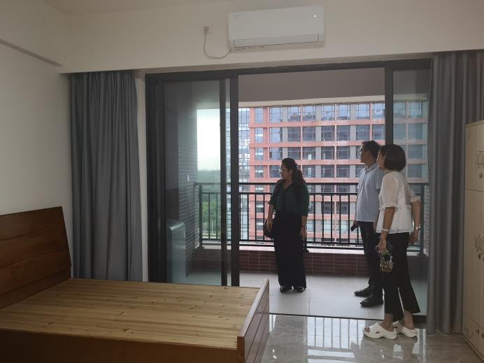 To provide new students with a welcoming and comfortable living environment, Dean Hui Yanyan and Party Branch Secretary Yang Lijun visited the dormitories prior to their arrival to assess the accommodations. Dean Hui emphasized that dormitories are essential spaces where students rest and live together, marking the first step toward adapting to university life. She urged the student affairs department to prioritize dormitory safety and hygiene, and adhere to the 5S standards in building a conducive environment that fosters good living habits among students.(5S: Seiri, Seiton, Seiso, Seiketsu and Shitsuke)