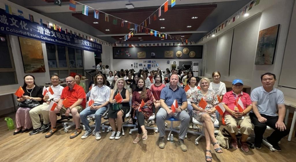 To further broaden university students' international perspectives and enrich the multicultural atmosphere on campus, following the successful organization of eight sessions of the "Exploring Foreign Cultures, Promoting Mutual Learning Among Civilizations" international cultural exchange series, the ninth session—the Polish Culture Sharing Session—was held on September 3, 2024. The keynote speakers for this event were Dr. Bogdan Wierzbinski, Dean of the Faculty of Social Sciences at the University of Rzeszów, Poland, and his wife, Ms. Agnieszka Wierzbinska. Attendees included Wang Wenzhong, Director of the Office of International Exchange and Cooperation; Hui Yanyan, Dean of the International School; Fu Zhigang, Visiting Professor from the University of Rzeszów; Yang Lijun, Secretary of the International School's Party Branch; Dr. Aneela Qadir, a Pakistani faculty member; John Jung, an American faculty member; Begum Firinci, a Turkish faculty member; Joshua Cachin, a Filipino faculty member; and over 60 students from the School of Data Science, School of Humanities, School of Health Medicine, School of Artificial Intelligence, School of Communication and Media, and the International School. Together, they immersed themselves in the charm of Polish culture. The session was hosted by Director Wang Wenzhong.