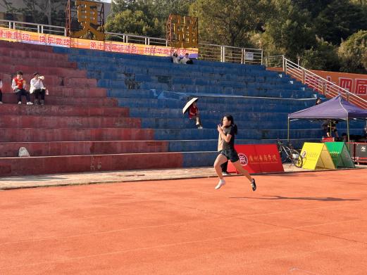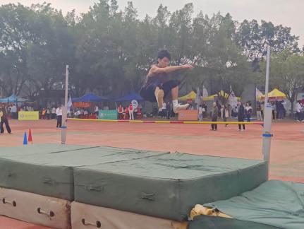 In the intense track and field competitions, Lin Yuequn from Class of 2024, International Economics and Trade program, stood out brilliantly in both men’s high jump and long jump events, earning second place in high jump and third place in long jump, showcasing excellent jumping ability and precise technique.
