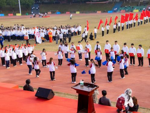 On December 6, 2024, the 14th Annual Sports Meet of Guangzhou Huashang College grandly opened, with the International School’s team and athlete representatives Li Boyuan, Chen Chen, Li Jiaotong, and 54 other students shining at the opening ceremony. Full of enthusiasm and high spirits, they performed the passionate dance “Waka Waka,” showcasing youthful vitality and proudly chanting the slogan: “International School Shows Its Edge, Creating Glory on the Sports Field,” making a dazzling debut.