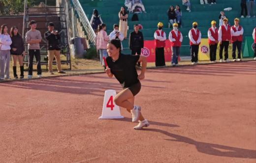 In the women’s 4x100 meter relay final, the team composed of Huang Yasheng (Class of 2022, International English Program, Upgrading Class 1), Shi Ruini (Class of 2023, International English Program 1), Liu Xile (Class of 2023, International Economics and Trade Program 1), and Jiang Yiran (Class of 2024, International English Program) transformed the relay baton into a symbol of trust and strength. They sprinted fiercely on the track with every baton exchange demonstrating close coordination. After intense competition, they won a commendable second place.