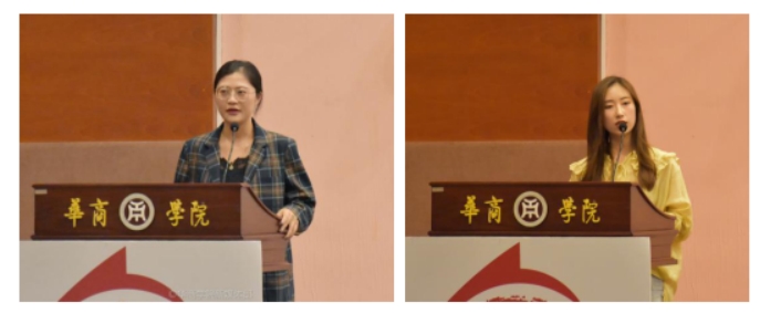 Ms Jiang Yujun and Ms Jin Yihan, the teacher representatives of the training camp, giving speeches