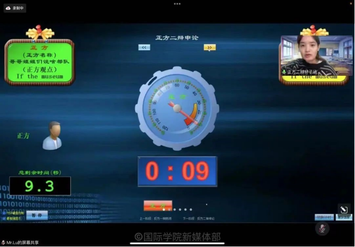 Then, Dr. Sal made comments on the competition. He said that although the debating topic was difficult, both sides did very well. He thought it was a very exciting contest. He also pointed out that voice is extremely important for online debate competitions, and you should make sure that if your emotion can impress the audience. Finally, he recognized the excellent performance of the debaters, and hoped students would make continuous efforts.