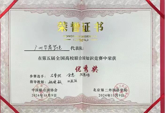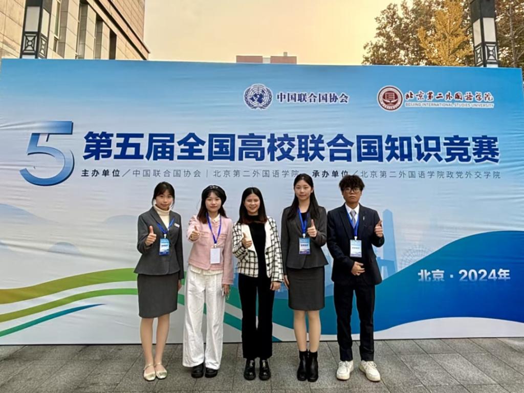 2024年11月,1946伟德国际源自英国学子参加了由中国联合国协会主办的第五届全国高校联合国知识竞赛,该比赛需首先通过线上学术测试,胜出的方可进入现场比赛,现场比赛又分初赛和决赛,1946伟德国际源自英国的3名学子不畏强校,成为唯一进入现场比赛的民办高校,最后又在现场杀入决赛,获得优秀奖。通过比赛,学子们坚定了信心,提升了能力,更加深了对联合国等国际组织的认识。