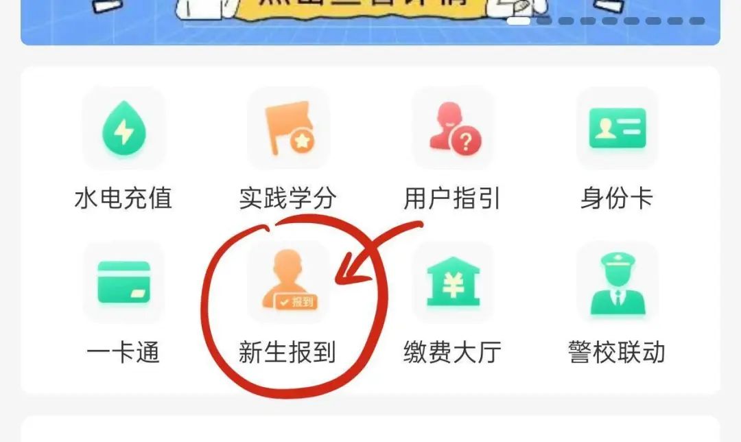 可在首页查看“新生报到”入口