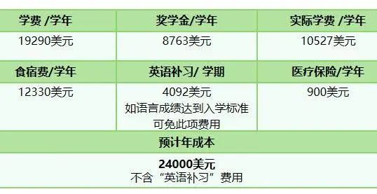 2)留学期间美方院校费用:按美方大学当年官网公布费用标准收费(2023年收费约人民币20万/学年,仅做参考)。