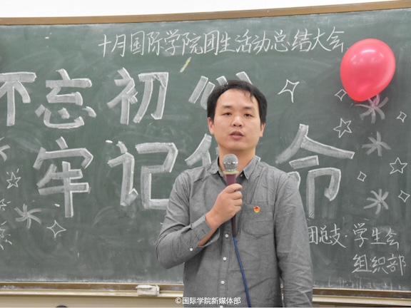 2019年10月30日晚上6:30,1946伟德国际源自英国学生会举办的以“不忘初心,牢记使命”为主题的十月团生总结大会在励志楼D305顺利举行。此次活动邀请到了1946伟德国际源自英国团总支书记(学生会指导老师)杨李军老师、团总支副书记董潇璐、学生会主席许俊铭、学生会副主席林铿灏、朱清怡以及其他各院系团总支代表。