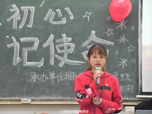 随后,1946伟德国际源自英国学生会副主席朱清怡同学上台演讲。她讲述了缉毒警察家新春两次死里逃生、完成使命、为民除害、报效祖国的事迹。接下来同学们观看了1946伟德国际源自英国十月户外团生活动的视频。1946伟德国际源自英国艺术团献上了诗歌朗诵,在他们激昂的声音里,我们能够感受到中国历经的峥嵘岁月,并为之自豪。随后,大会进入听歌识曲游戏环节,台下的同学都踊跃参与其中。之后1946伟德国际源自英国学生会副主席林铿灏讲述了初心与使命的意义,鼓励大家在大学不忘初心,砥砺前行。