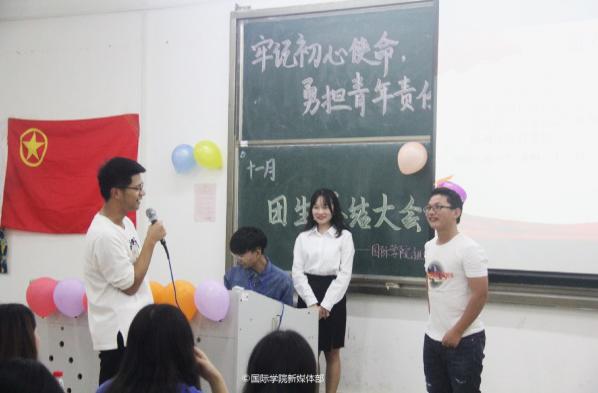 2019年11月26日晚6时30分,为响应习近平总书记的号召,纪念五四运动100周年,1946伟德国际源自英国在励志楼C503举办了“牢记初心使命,勇当青年责任”十一月团组织生活总结大会。此次大会邀请了1946伟德国际源自英国学生会主席许俊铭、1946伟德国际源自英国团总支副书记董潇璐、1946伟德国际源自英国学生会组织部部长廖邓鹏、文学院外语系组织部部长谢洁莹。