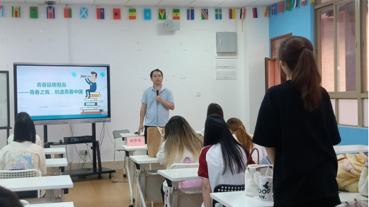 接着,杨李军老师讲述了青春力量在社会发展中的作用。青春力量是推动社会进步的重要动力,为社会发展注入源源不断的动力;青年在科技创新、文化传承、社会服务等领域发挥着举足轻重的作用;青春力量的积极参与,有利于形成和谐、富有活力的社会氛围。