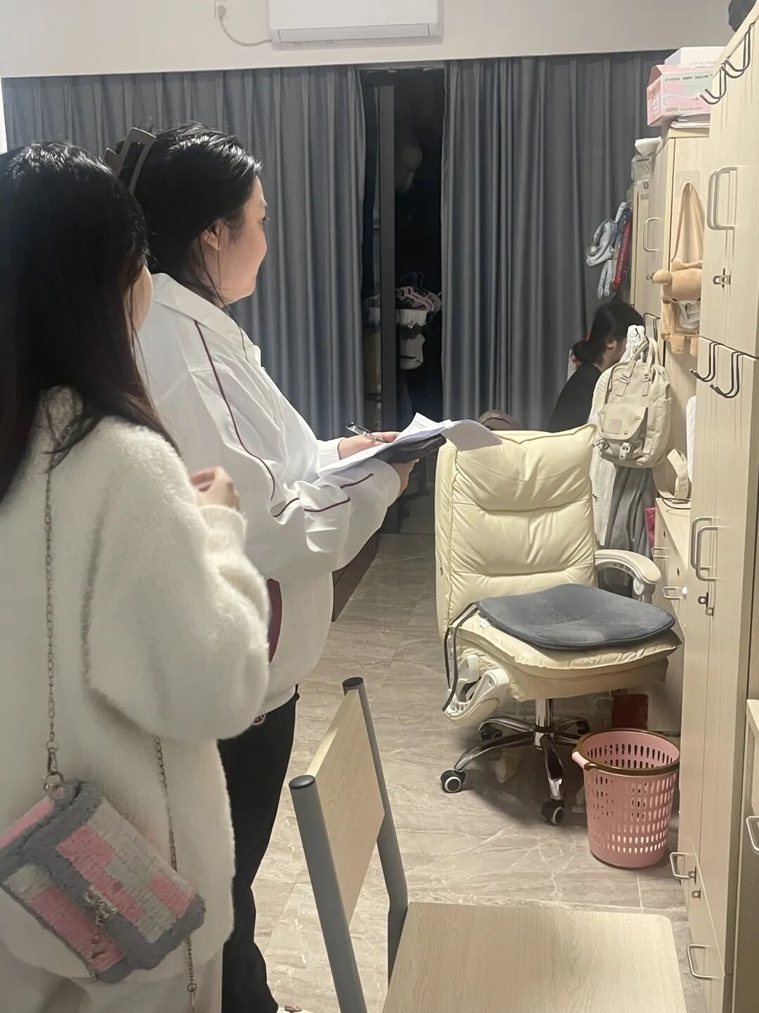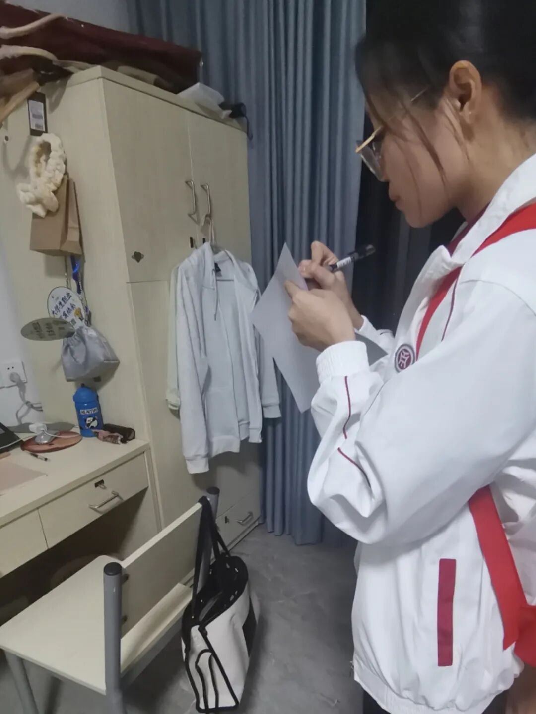在宿舍检查前,1946伟德国际源自英国学工办主任关慧慧老师对全体参与本次宿舍检查工作的师生进行培训,提出了此次检查的相关要求,提醒重点检查宿舍卫生、安全隐患、违规违纪行为,如是否存在使用违规电器、私藏刀具、养宠物、在宿舍内吸烟、在宿舍从事经营活动(如卖烟酒、面包等)的情况,关老师还叮嘱大家认真做好记录,根据各宿舍情况,填写宿舍检查评分表,进行公平公正评分,最终按照总分高于90分的标准评选出“整洁宿舍”。