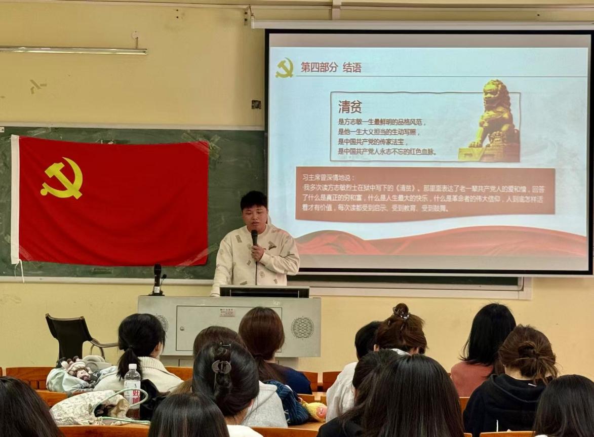 本次主题党课内容详实、情感真挚,具有深刻的教育意义。与会同学深受触动,现场气氛庄重而热烈。大家纷纷表示,通过对方志敏事迹的学习,对革命先辈的奋斗牺牲有了更直观的感受,对理想信念的力量有了更深刻的认识,将在今后的道路上,以先烈为镜,砥砺前行,用实际行动践行“请党放心,强国有我”的青春誓言。