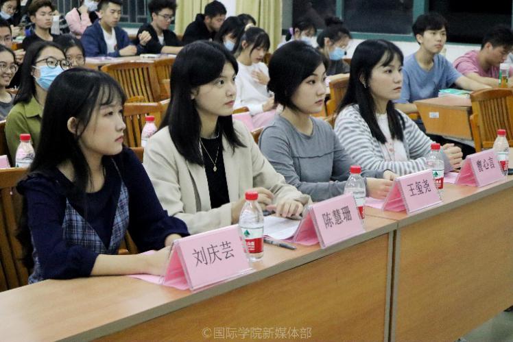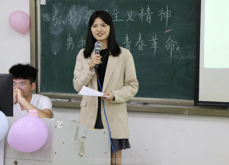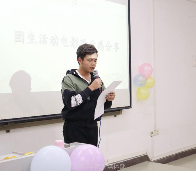紧接着,同学们观看爱国电影片段,短暂的观影过后由20级国际商务国际班张晓迎和19级金融工程双语班苏浚泓作为学生代表宣读十月团生电影活动的观后感。他们表达了对抗日英雄的敬佩之情,并表明我们作为团员应当秉承“不忘初心,牢记革命”的精神。