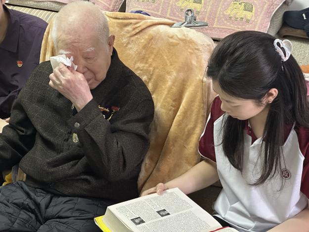 党员同志们还一起观看了庞老事迹专题纪录片,瞻仰了他珍藏的解放中南纪念章、抗美援朝纪念章、天安门国庆阅兵纪念章、立功证书以及记录革命岁月的泛黄照片。这些珍藏多年的勋章和证书诠释了一名老战士对党和人民的赤胆忠心。虽已鲐背之年、言语不便,庞老仍勉励青年党员:“要永远听党话、跟党走,把革命精神代代相传,为实现中华民族伟大复兴不懈奋斗。”