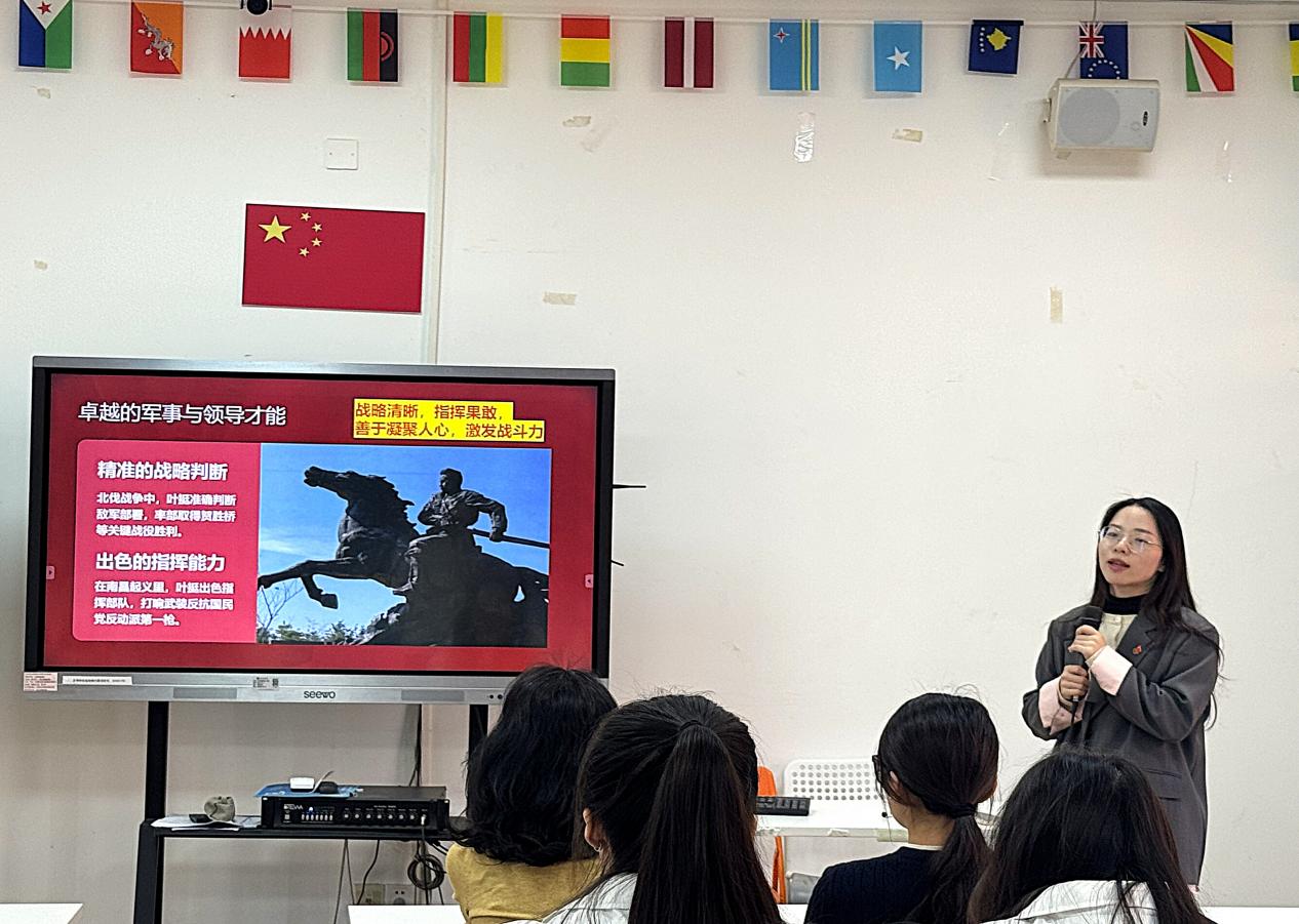 三是阐明意义,强化认同。郝老师指出,叶挺精神是中国共产党人精神谱系的重要组成部分,学习叶挺精神,对于新时代青年传承红色基因、筑牢信仰之基,锤炼党性修养、提升精神境界,以及赋能成长成才、激发奋斗动力具有重大现实意义。它激励着青年一代坚定“四个自信”,增强历史使命感,勇于在学业、科研与社会实践中挑重担、克难关。