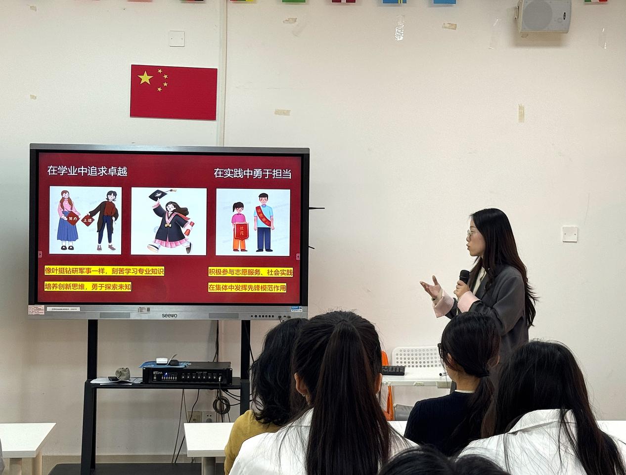 四是指引行动,寄语未来。课程最后聚焦“如何践行”,向青年学生发出行动号召:要在学业中追求卓越,刻苦钻研,培养创新思维;要在实践中勇于担当,积极参与志愿服务与社会实践;要在集体中发挥作用,保持初心,坚韧不拔,以实际行动体现“忠诚、担当、奋斗”的品质。