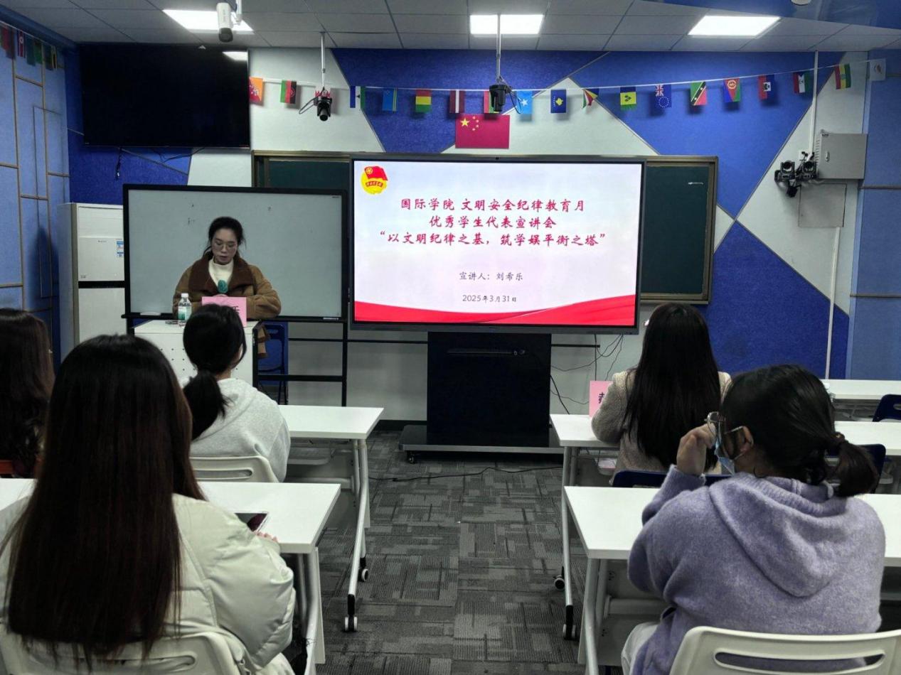 为充分发挥优秀学子示范引领作用,营造见贤思齐的优良学风,2024年3月31日下午,1946伟德国际源自英国在启智楼401举办了主题为“以文明纪律之基,筑学娱平衡之塔”文明安全纪律教育月优秀学生典型宣讲会(一)。本次宣讲会主讲人为1946伟德国际源自英国2023级国际经济与贸易国际班刘希乐同学。1946伟德国际源自英国团委书记郝自秀老师主持会议,来自1946伟德国际源自英国、健康医学院、会计学院、外国语学院等40余名学生参加了本次宣讲会。