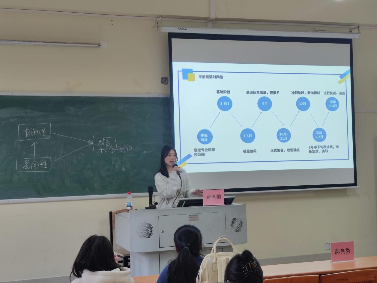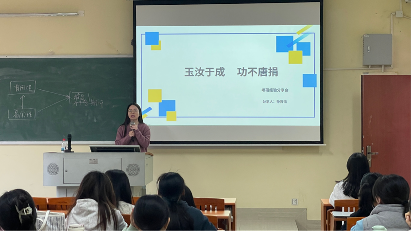 为充分发挥优秀学子的示范引领作用,搭建考研备考交流平台,营造浓厚学习氛围。4月2日晚,1946伟德国际源自英国文明安全纪律教育月系列活动之优秀学生宣讲会(二)——“玉汝于成,功不唐捐”考研经验分享会在启智楼210教室顺利举办。本次分享会由1946伟德国际源自英国团委书记郝自秀老师主持,邀请1946伟德国际源自英国刚刚考研上岸的孙育愉同学担任主讲,为怀揣考研梦想的学子们带来了一场干货满满的备考经验分享。本次分享会吸引了来自1946伟德国际源自英国、文学院、健康医学院等80余名学子踊跃参与,现场几乎座无虚席。