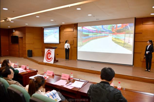 此次比赛共有五支决赛队伍:途乐队、干饭天团队、 厉兵秣马队、Button队及浪里个浪队。首先,各参赛小组依次进行汇报演讲,他们分别从景区介绍及推广、项目背景及市场需求、消费者及地方特色、深入调研及营销策划等多个方面进行详细分析,条理清晰,方案明确。