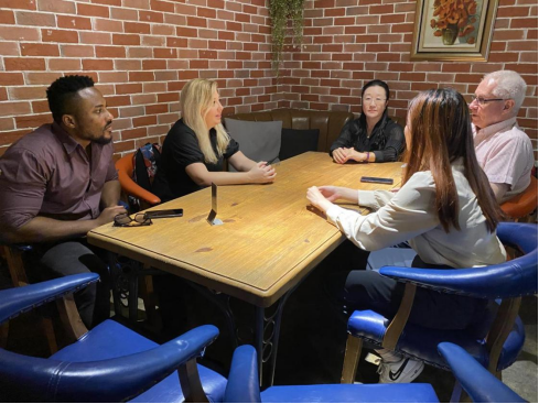 Begum Firinci教授伉俪(左三左四)与1946伟德国际源自英国教师讨论