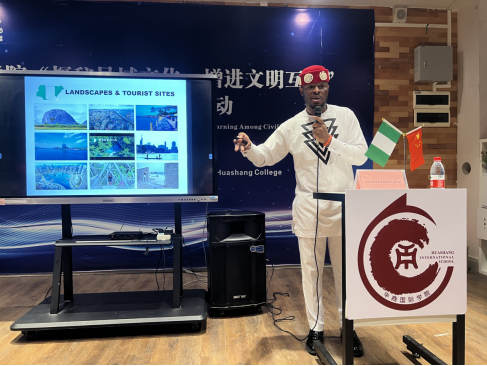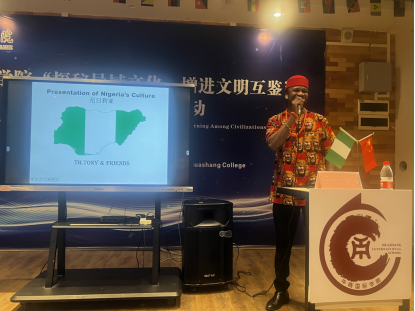 随后,THOMAS TONY CHIDI带领大家走进尼日利亚,他从地理位置、人口数量、文化产业、经济支柱、国际贸易等角度,用风趣幽默的语言做了详尽地介绍。
