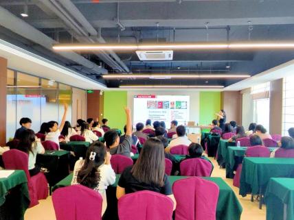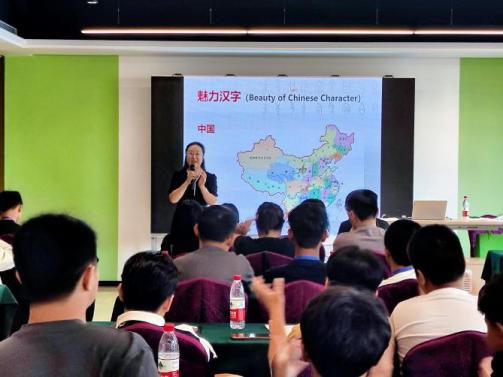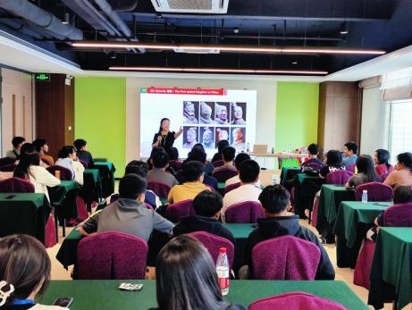 首先,回雁雁院长全英文讲授了中国历史课,她从学生们参观过的西汉南越王博物院出发,引出了秦朝的壮大、发展以及对当今中国管理模式的影响;从举世闻名的兵马俑讲到秦朝的书同文、车同轨对于完整统一中国的重要贡献;从秦始皇开拓灵渠进军岭南的故事,讲到中华民族善于调研、思考、创新的历史传承;通过西汉南越王博物院的文物,讲到岭南文化与中原文化的一脉相承及南北融合特点;从广州近200年的“一口通商”历史,讲到广交会的国际影响力及作用。授课期间,为了激发印尼学生的学习积极性和踊跃回答问题,回雁雁院长用兵马俑模型做奖品,加深了印尼学生对中国历史文化的认识。