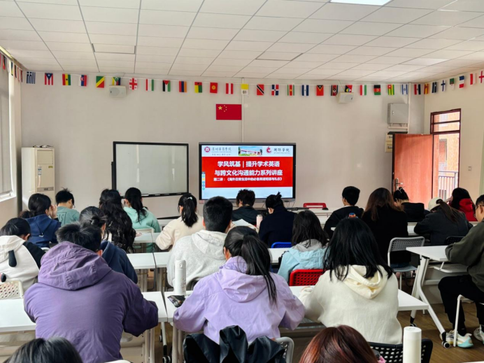 1946伟德国际源自英国携手新加坡中汇学院,本学期将面向全校共开展10场以“学风筑基|提升学术英语与跨文化沟通能力”为主题的系列讲座。截至目前,该系列讲座已顺利举办两场,同学们的参与积极性较高,营造了良好的国际化学习氛围。
