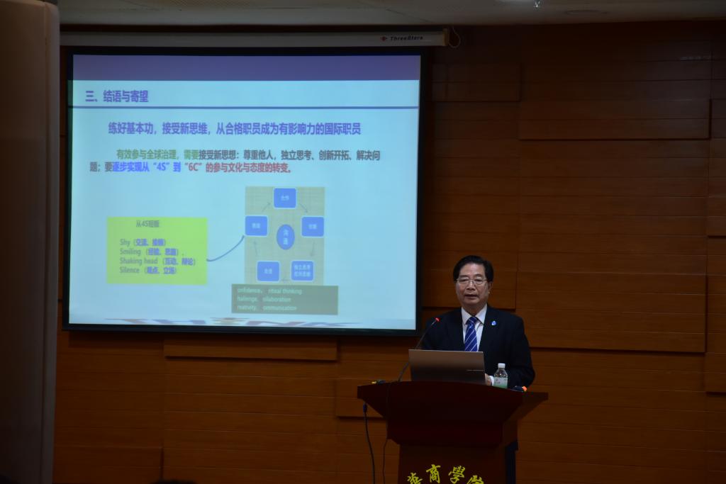 何昌垂院士指出,面对世界格局的深度调整、科技革命迅猛发展和新兴经济体集体崛起的新形势,全球治理体系进入关键转型期,新时代大学生必须立足中国实际,胸怀全球视野,深刻理解自身在全球命运共同体、民族复兴伟业中的历史定位与时代责任。他强调当代青年肩负着三重时代使命:推动民族复兴、促进人类命运共同体建设、助力全球可持续发展目标实现,为此,基于联合国胜任力框架,何院士提出"三维视角"的人才培养方法:青年学子要建立本土立场、他国视角和全球思维的多维认知体系。在能力塑造方面,何院士强调要重点培养六大核心素养:深厚的家国情怀、广阔的国际视野、扎实的专业功底、出色的跨文化沟通能力、活跃的创新思维以及强烈的社会责任感。