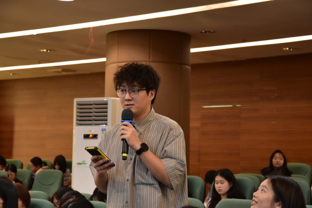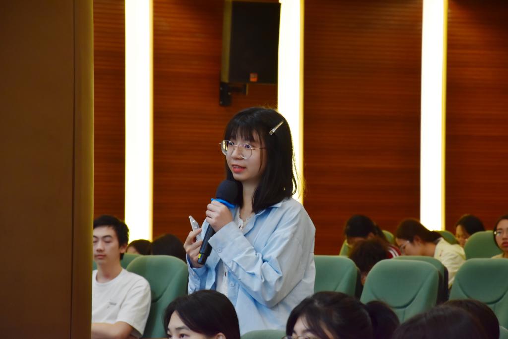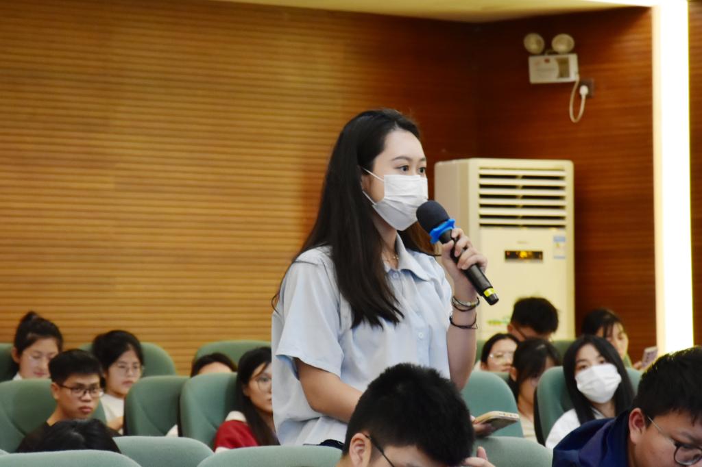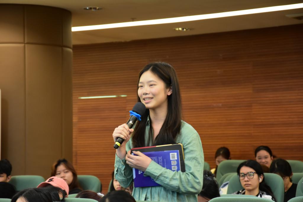 在互动环节,何昌垂院士鼓励同学们多思考和发问,并对提问逐一解答。针对文科生处理技术性议题的困惑,何院士建议要培养跨学科思维,主动利用国际组织提供的丰富学习资源,同时注重提升自主学习能力,掌握快速吸收新知识的方法。谈及国际人脉拓展,何院士结合自身经验,建议同学们通过参与学术社团、争取实习机会、投身跨文化交流活动等途径逐步积累。最后,他强调语言能力固然重要,但跨文化交流更需要开放包容的心态和敢于表达的自信。就全球治理中的资源分配这一专业问题,何院士耐心地阐释了必须遵循的基本原则:既要恪守国际法和国内法相关规定,又要确保资源使用的公共属性,同时要特别关注发展中国家的实际需求。