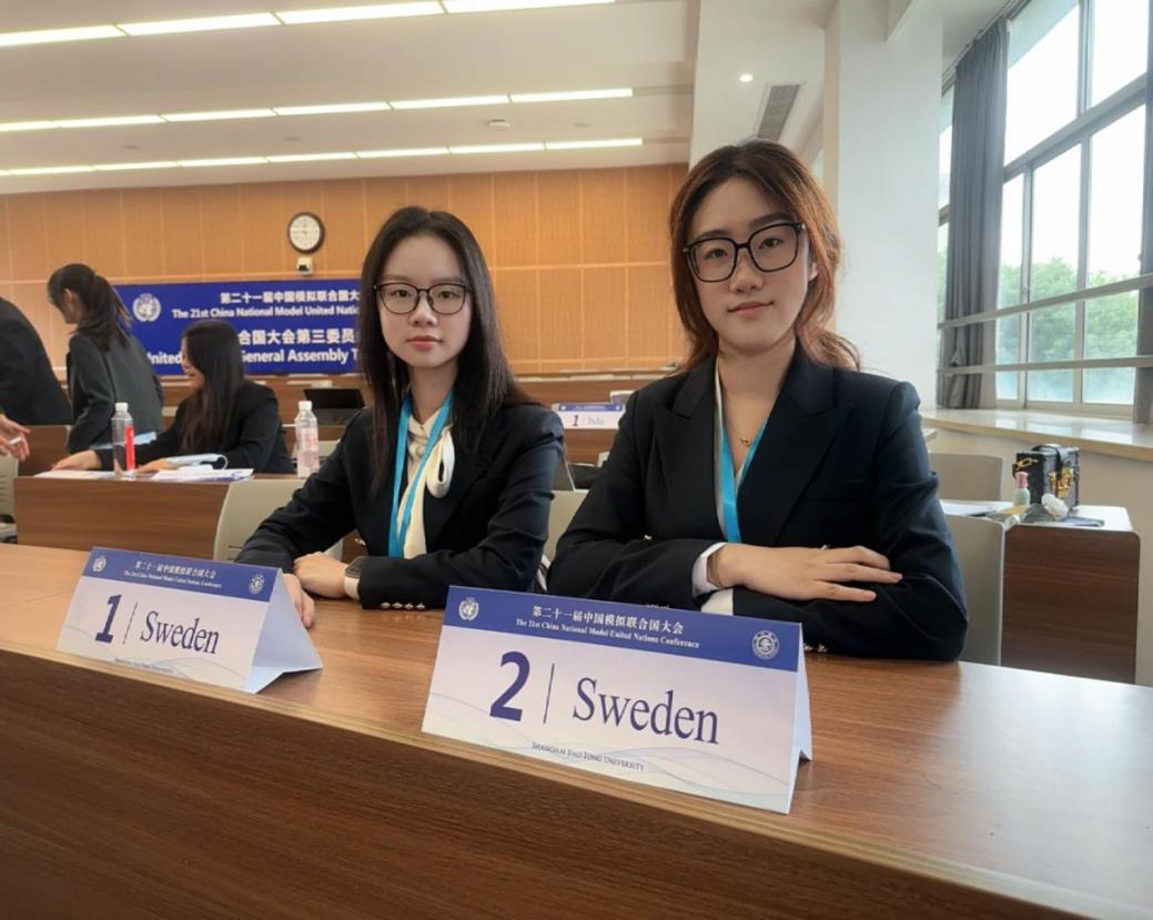 本次大会共设置三个联合国大会委员会及包括“联合国网络犯罪问题特设委员会”在内的七个分会场。劳雅怡同学代表埃及参加“联合国大会第一委员会”,就“军事领域人工智能及其对国际和平与安全的影响”议题进行了深入探讨;刘雅文与刘嘉怡同学代表瑞典在“联合国大会第三委员会”中围绕“促进落实发展权”提出建设性意见;余意同学则代表韩国参与“联合国网络犯罪问题特设委员会”,就“人工智能时代的全球网络安全治理”展开讨论。她们与来自北京外国语大学、上海外国语大学、上海交通大学、国防科技大学等多所高校的优秀学子同场交流,围绕多项国际热点议题,以英语进行观点陈述与多边磋商,共同探寻全球性挑战的可行解决方案,充分展现了华商学子出色的思辨能力与扎实的英语水平。