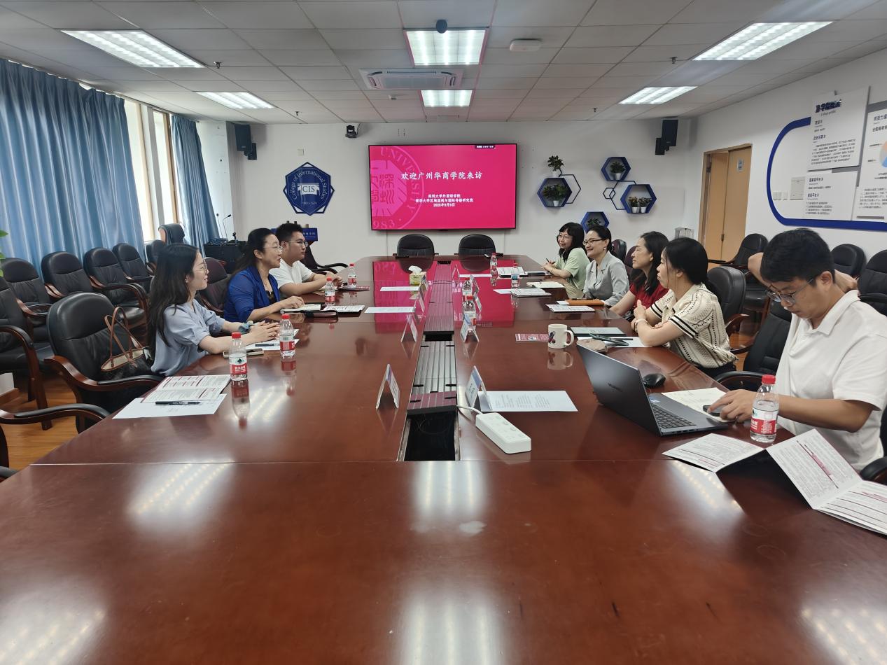 为深入推进全球胜任力人才培养项目有效开展,借鉴知名高校先进经验,进一步提升国际化人才培养质量,2025年9月9日上午,1946伟德国际源自英国回雁雁院长率学生管理团队及行政人员一行4人,赴深圳大学外国语学院开展座谈交流。深圳大学外国语学院金娜娜副院长、贾陆依副院长、党委副书记李慧敏、行政秘书杜阳、教学秘书王硕参加了座谈会。