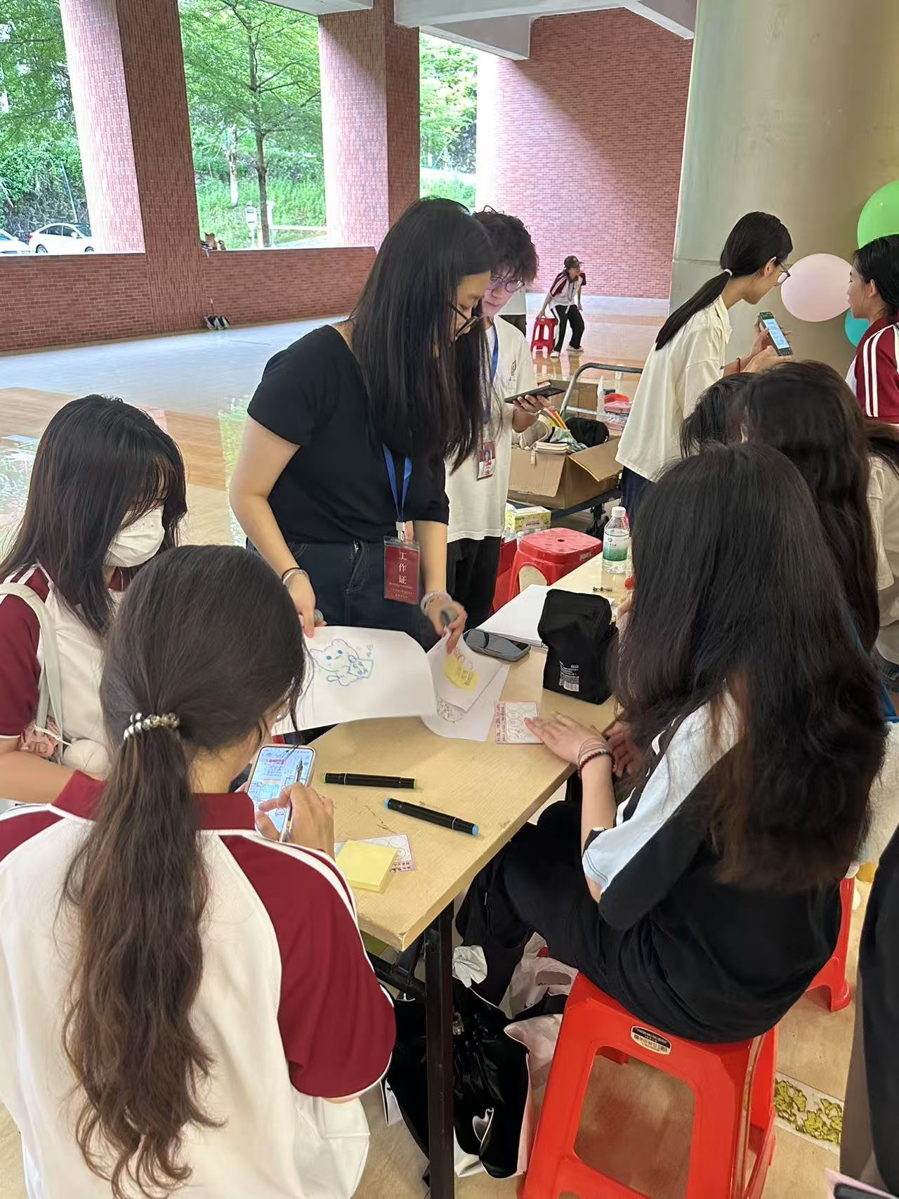 在“心灵镜中的我”游戏环节,同学们用画笔在纸上勾勒出内心的真实模样,无论是写实肖像,还是象征情绪的抽象图案,每幅作品都展现出参与者对自我认知的深度思考。同学们或携带提前创作的画作,或现场即兴创作,在色彩与线条的交织中完成了自我审视。这些作品不仅是个人内心世界的视觉化呈现,更成为所有参与者探索自我的集体记忆载体。