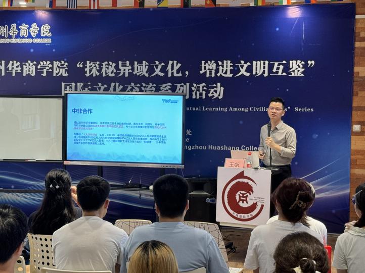 随后,王帆先生向大家分析了他所从事的涉外企业的发展前景。他先从中国对外开放的现状及未来趋势为切入口,向同学们普及“一带一路”倡议、人类命运共同体、中非合作等国家层面的宏观策略,并提到了目前中国企业“走出去”战略的机会与挑战。