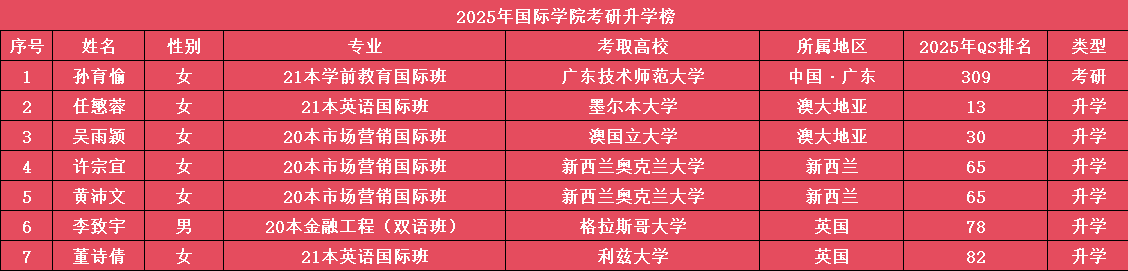 2025届1946伟德国际源自英国就业率100%,连续三年居全校前列。2025届毕业生中,58.3%成功进入海内外高校攻读硕士研究生,升学率较2024届提升了25.7个百分点,其中被QS2025排名前50高校录取的比例达33.3%。