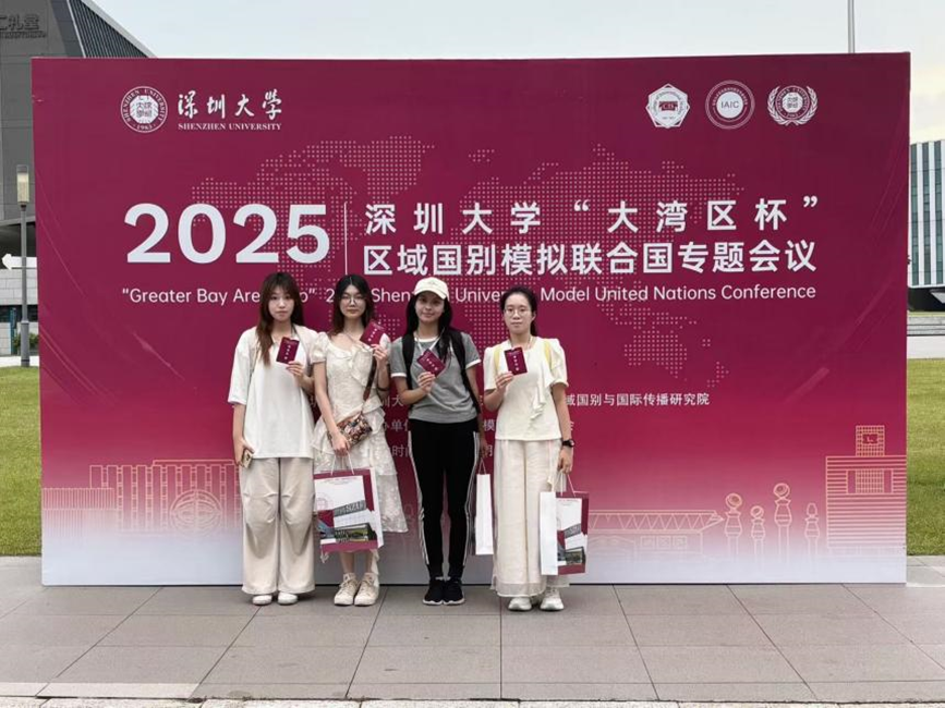 2025年7月18日至20日,1946伟德国际源自英国2023级国贸专业刘希乐、24级国贸专业黄景博、24级会计专业饶琳和刘婧怡赴深圳大学参加“大湾区杯”区域国别模拟联合国专题会议。