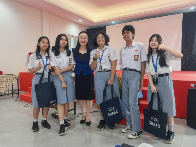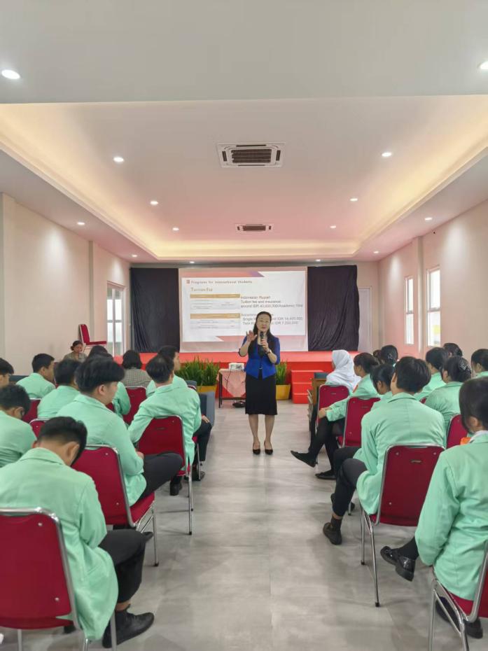 在Pelita三语国民学校与茂物同一学校两所高中的三场宣讲会上,回雁雁院长介绍了中国、粤港澳大湾区、广州市的历史及科技发展,陈佳欣老师介绍了我校来华留学生招生专业、录取条件及冬令营项目的开展情况,800多名高中生聆听了宣讲,并聚焦我校国际商务、汉语言文学等专业,详细咨询入学条件、奖学金政策及校园生活。