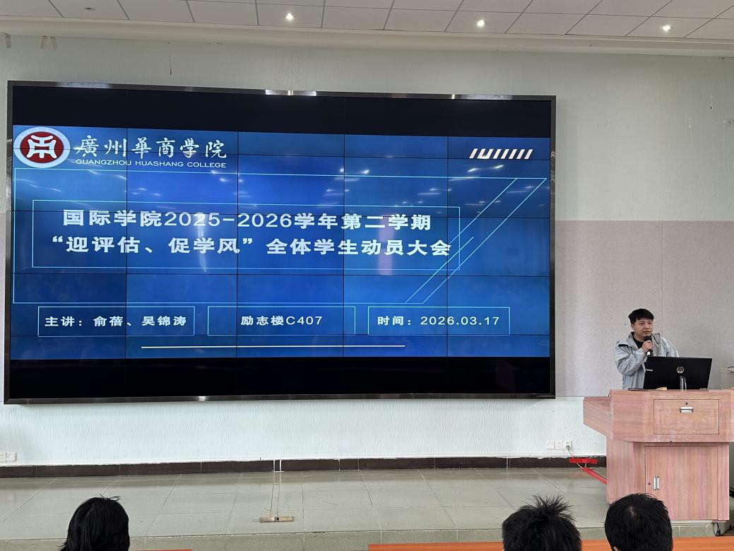 为深入贯彻落实学校本科教学工作合格评估的整体部署要求,进一步统一全院思想、明确迎评任务、落实育人责任,引导全体学生以“主人翁”的姿态积极投身迎评攻坚工作,2026年3月17日下午,1946伟德国际源自英国于广州校区励志楼C407召开了2025 - 2026学年第二学期“迎评估、促学风”全体学生动员大会。1946伟德国际源自英国副院长俞蓓、学工负责人吴锦涛,学院全体辅导员以及全体在校生参加了本次大会。