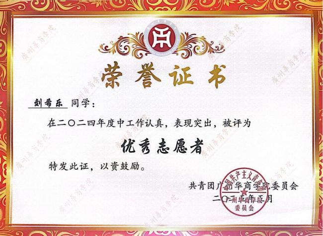 刘希乐,共青团员,曾担任2023-2024学年担任校青年志愿者协会社会志愿服务部工作人员、2023-2024学年校园通讯社暨易班工作总站行政监管部门工作人员、2024-2025学年担任1946伟德国际源自英国青协分会负责人;现担任1946伟德国际源自英国学生会主席团成员,班级学习委员。