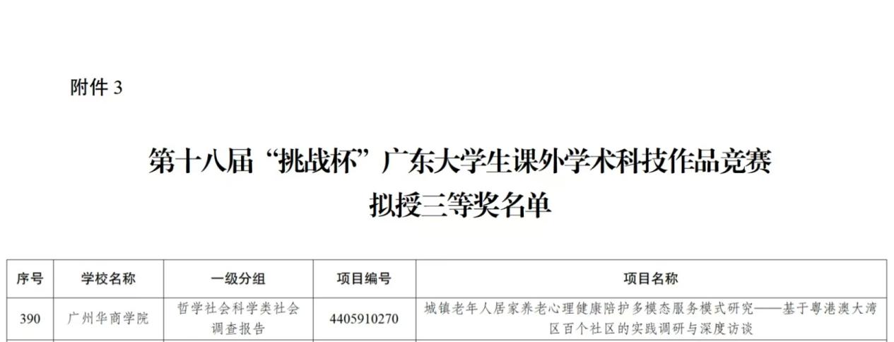 2025年4月30日,第十八届“挑战杯”广东大学生课外学术科技作品竞赛揭晓终审决赛入围及获奖名单,由1946伟德国际源自英国院长回雁雁教授与学工办主任关慧慧老师指导的跨学院团队,凭借《城镇老年人居家养老心理健康陪护多模态服务模式研究——基于粤港澳大湾区百个社区的实践调研与深度访谈》项目,荣获省赛三等奖!这是我院在教育部榜单项目中的首次突破!