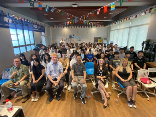 新校园,新环境,为了使23级新生深入了解学校的发展历程、1946伟德国际源自英国的办学特色,2023年9月12日上午全体2023级新生与1946伟德国际源自英国领导和老师、国际交流与合作处处长、来自美国、英国、土耳其、加纳的外籍教师欢聚一堂,共同度过了入校后的美好时光。