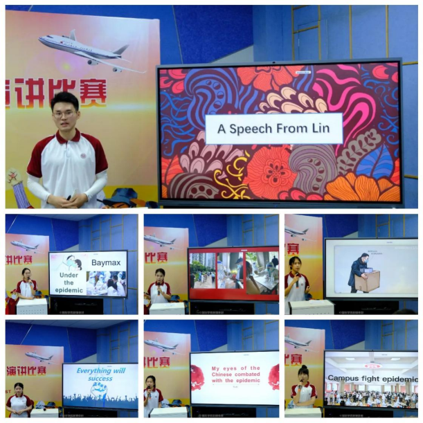英语演讲的主题为讲述中国的抗疫故事。杨梦彤讲述了在疫情突袭下各行业的人员都行动起来,小小的举动释放出巨大的能量,她坚信这一艰难的时期会使中国变得更强大。吴秋彤讲述母亲节前一天,她的家乡湛江首次出现本土病例时,大家选择迎难而上的故事,相信在国家的带领下终将会战胜疫情。廖凤君以“我的城市之光”为主题,讲述疫情期间“大白”穿着厚厚的防护服,坚守岗位守护人民的光荣事迹,一个个平民英雄身上散发出爱的光芒。林澄枫认为我们每个人都是英雄,每个小小的努力都是中国史诗般防疫故事的组成部分。谢婷婷通过邻居互相送物资、亲戚主动请缨做志愿者、快递小哥无偿捐献等身边小事展开演讲,认为这些平凡的举动是战胜疫情的希望。陈湘瑜通过讲述自己的亲身经历,向大家呈现了深圳遭受疫情时共同抗疫的画面,并坚信这场没有硝烟的战争终究会胜利。董诗倩讲述了校园志愿者们协助医护人员开展核酸检测工作,用行动诠释当代大学生的责任与担当的故事。