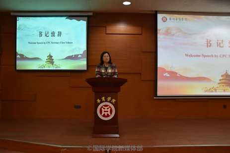 陈玉欢书记代表学校发表了致辞,她表示,这次比赛具有鲜明的时代意义,能够在提高大学生英语水平的同时,可以拓宽国际视野,更能够增进对习近平主席的“一带一路”倡议的深入了解,也可借此契机向外籍教师并借助他们向世界传递中国声音,展示当代大学生的风采。本次活动在学校18周年校庆来临之际举办,也是为校庆活动增光添彩。