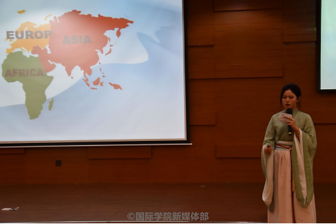 比赛环节,参赛选手通过PPT展示配合英文演讲,分享了他们对“一带一路”倡议的理解、挖掘到的历史故事和中国出海企业以及与沿线国家合作交流的故事。选手们的表现博得了现场观众的阵阵掌声,选手的风采也深深感染了担任评委的外籍教师。