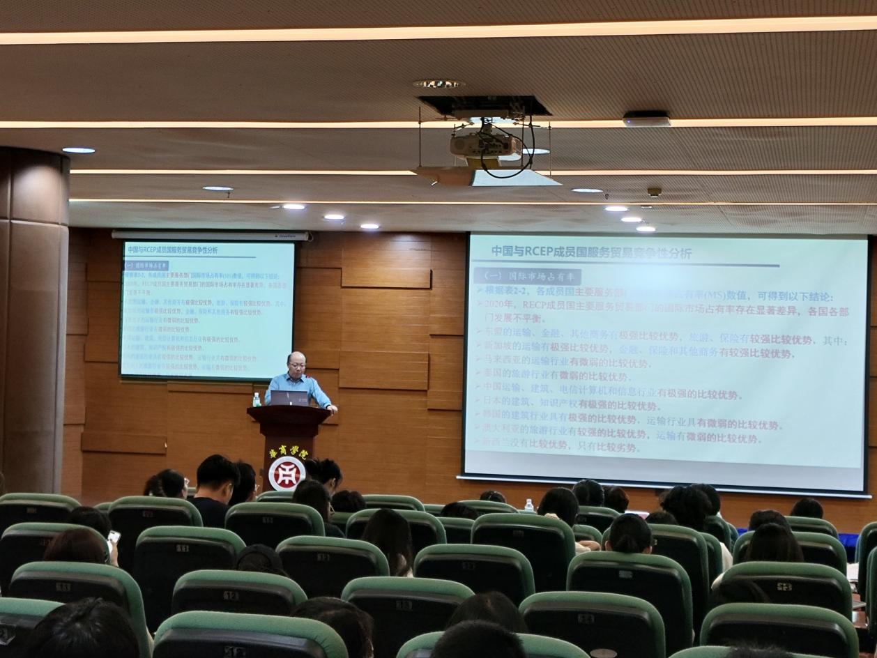 在讲座过程中,王教授展示了大量图表和详实的数据,让RCEP中成员国服务贸易竞争力研究变得一目了然。他指出,中国与RCEP成员国在建筑、电信计算机和信息、运输等行业具有较强的竞争优势,但在金融、知识产权等领域仍需努力提升。