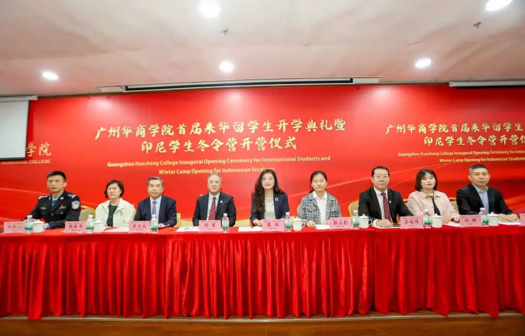 广东省高等教育学会外国留学生工作委员会蔡红理事长,广州市公安局出入境管理局郭立影大队长、广州市增城区荔湖派出所刘齐心副所长,伟德BV1946校领导班子、二级学院代表、相关职能部门负责人、外籍教师、全体来华留学生、印尼茂物同一学校冬令营全体师生及1946伟德国际源自英国教职员工共同出席了本次开学典礼暨开营仪式。