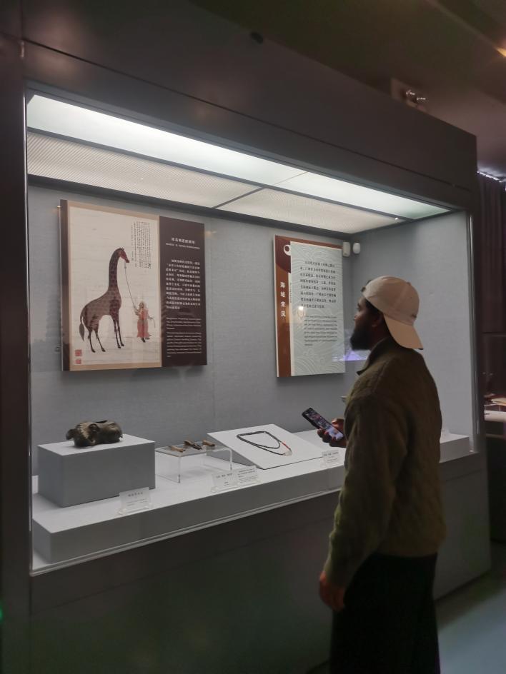 在海上丝绸之路展区,从“南海一号”沉船文物,到清代十三行贸易盛况,再到中外文化与艺术交流的历史印记,留学生们系统认识了广州作为千年商港的重要地位,深刻体会到广东在推动中外经贸往来与文化融合中的历史作用。